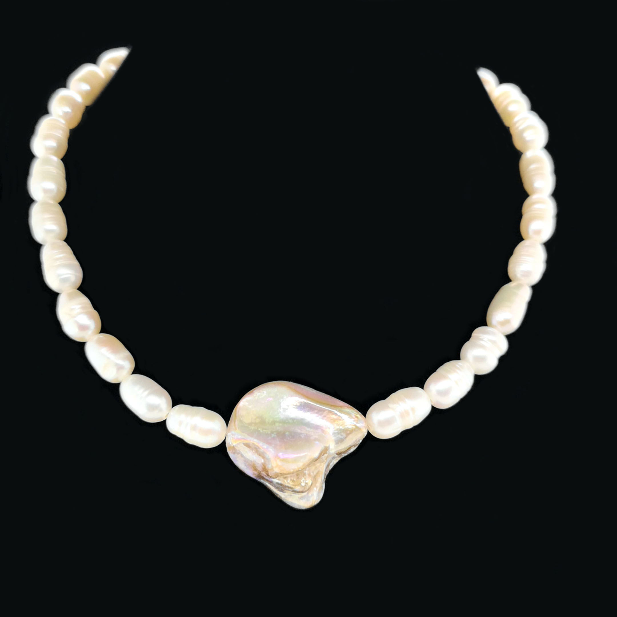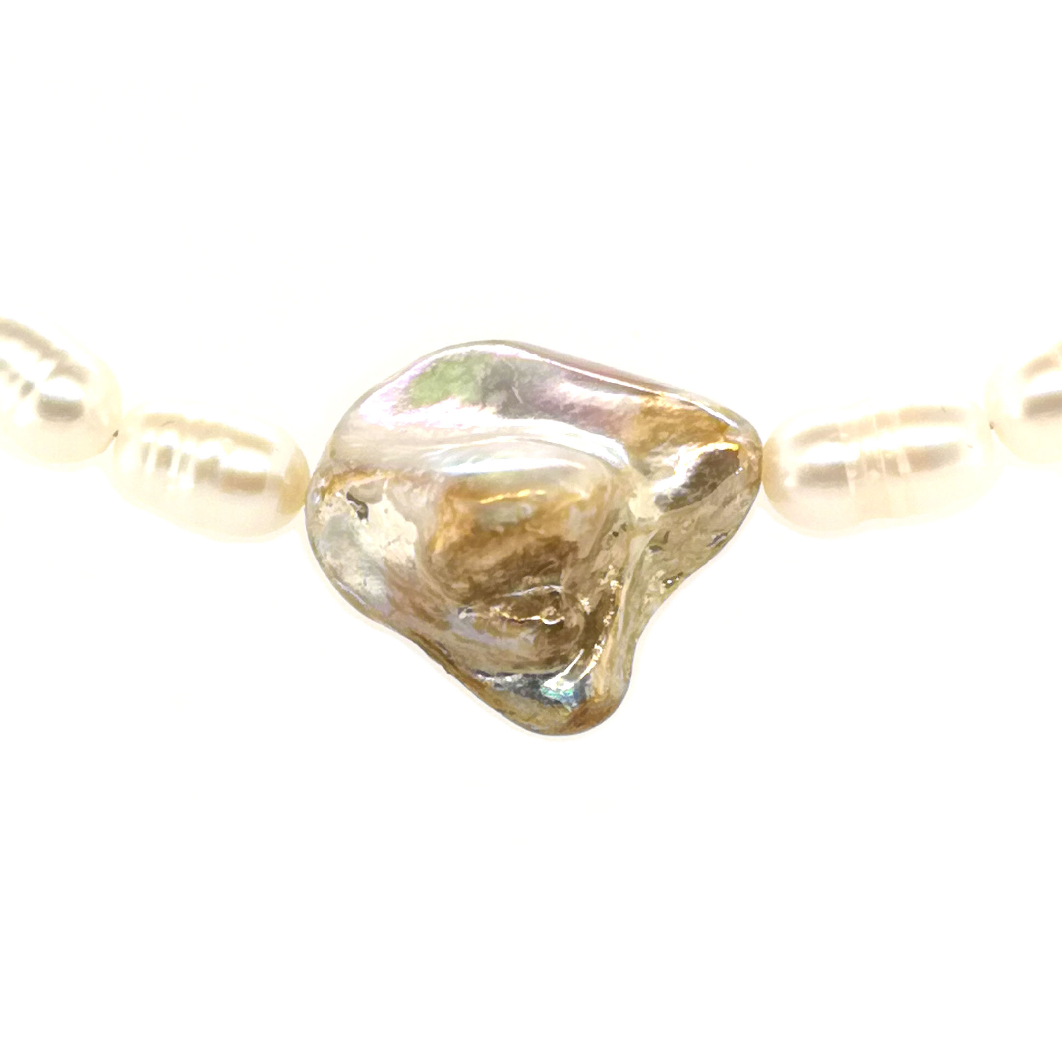 Süßwasser Zuchtperle ~10x6 mm. Perlmutt 20x19 mm. |